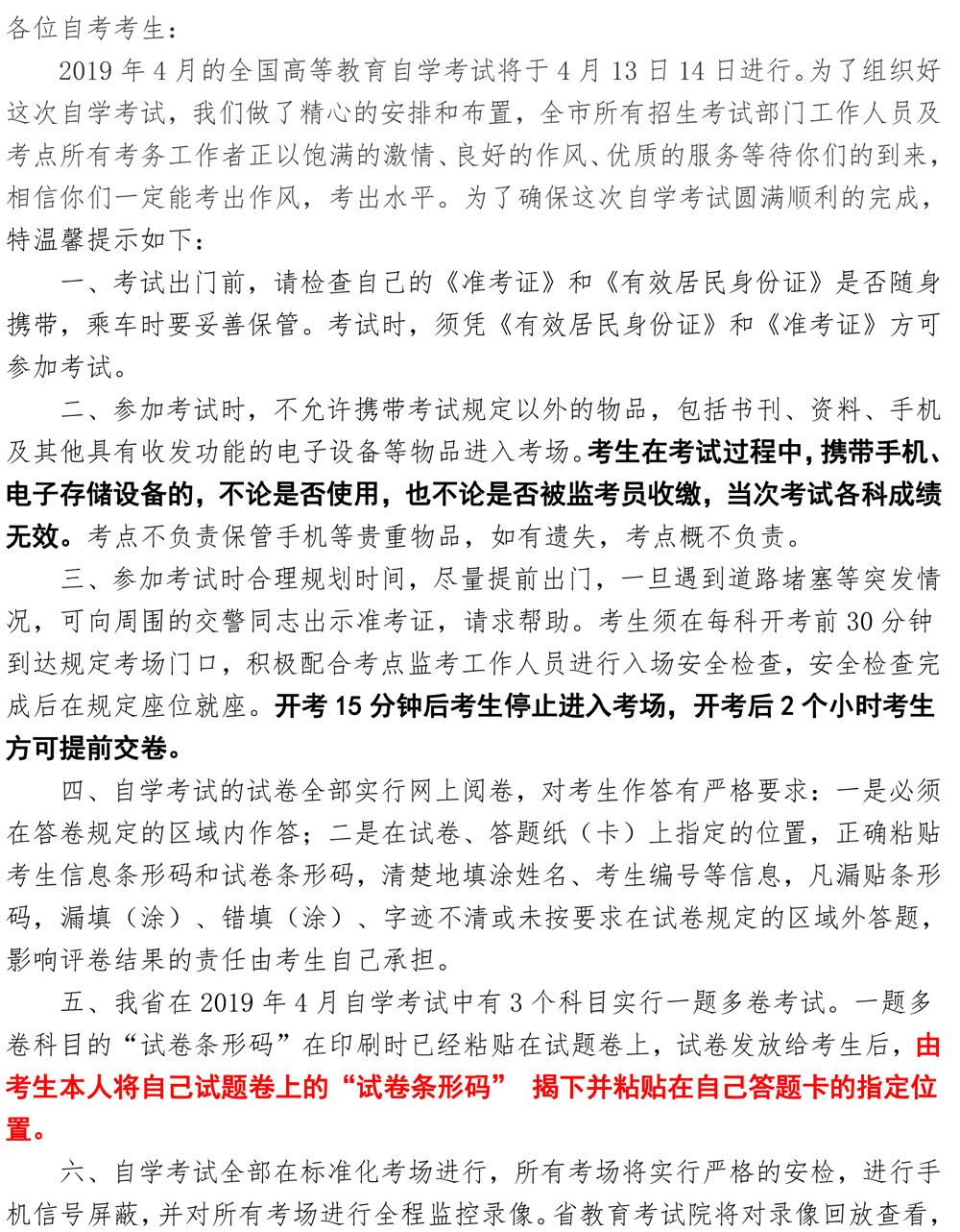 緻全體(tǐ)自考考生(shēng)的(de)公開(kāi)信