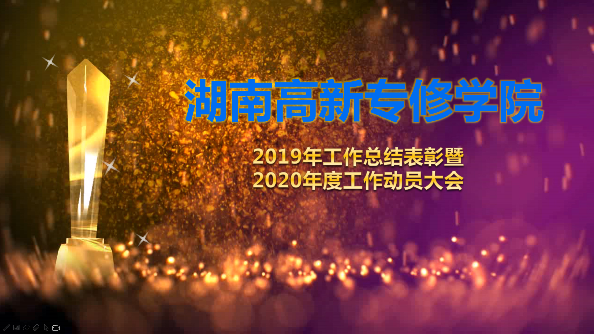 “美(měi)酒飄香團圓飲,玉鼠奏響好(hǎo)運曲”!2020年(nián)1月(yuè)15日(rì)下(xià)午δ3時(shí)整,湖南商貿經濟管理專修學院100餘名教職員(yuán)工(gōng)聚集在紅(hóng)星國(guó)際大(dà)酒店(diàn),歡聲笑₹語,在一(yī)遍喜氣盈盈的(de)祥和(hé)氣氛中,全體(tǐ)參會(huì)人員(yuán)莊嚴起立,高唱(chàng)國(guó)歌(gē),學院20∏19年(nián)度工(gōng)作總結暨2020年(nián)工(gōng)作動員(yuán)大(dà)會(huì)隆重拉開(kāi)β帷幕!